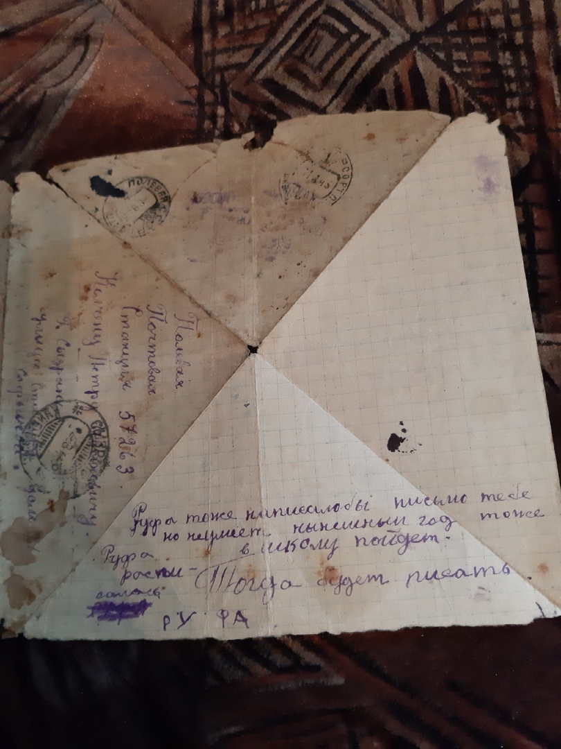 Валентина Павловна рассказывала о послевоенном времени, показывала фотографии. Но самое дорогое в ее альбоме это – последнее письмо, которое получил от родных ее двоюродный брат Петр Иванович Колчин, который был на фронте с первых дней войны. Это письмо нашли у него жители деревни, в которой он погиб и уже в мирное время передали родным. Так же Валентина Павловна читала письма с фронта.