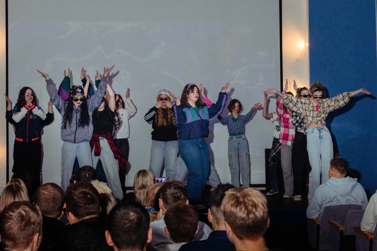 Весело и громко наши студенты в образе Деда Мороза, Снегурочки, Бабы Яги и Следователя устроили настоящий праздничный переполох и подарили зрителям не только положительные эмоции, но и новогоднее настроение.