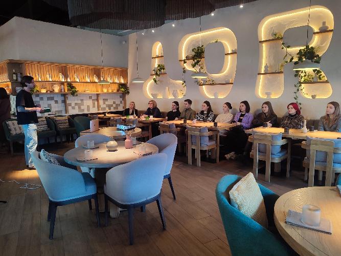 Получив уникальную возможность провести комплексный анализ особенностей управления бизнес-процессами успешной региональной сети, будущие рестораторы под руководством преподавателей Е.П. Афанасьевой и Л.А. Илюхиной погрузились в рабочую атмосферу ресторана.