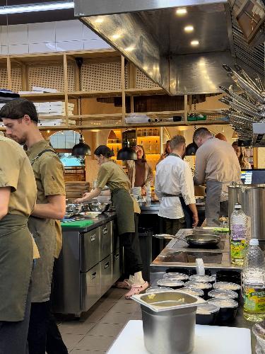 В рамках общей первоначальной экскурсии по OSTERIA LORA операционный директор Никита Сидов подробно познакомил ребят с теми впечатлениями и комфортом, которые получают гости от его посещения: особенностями внутреннего оформления, декором, расположением посадочных мест; студенты также посетили кухню, складские и хозяйственные помещения.